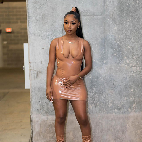 Mùa Xuân Sản Phẩm Hot New Không Tay U-Cổ Rắn Thoáng Khí Thân Thiện Với Môi Mini Sexy & Câu Lạc Bộ Ăn Mặc Bán Buôn Phụ Nữ